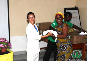Madame Cecillia, gagnante du prix de voiture de la filale de Green World en Tanzanie, a fait un discours de motivation