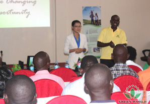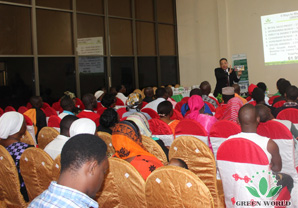 Un discours de bienvenue de Mme Masha Ma a commencé la conférence à Morogoro. M. Jerome, manager une étoile de la filiale de Green World en Zambie, a aidé à la traduction en langue swahili.