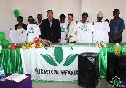 Mme Masha Ma a donné Green World T-shirts aux distributeurs récemment rejoint
