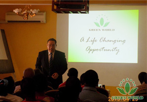 M. Budiman a introduit Green World et a demandé à tout le monde de prendre la sensibilisation à la santé à traves présenter des facteurs défavorables à la santé. Ensuite, il a présenté Green World Séries de produits de santé qui pouvaient promouvoir la qualité de la santé et prévenir les maladies dégénératives.