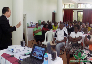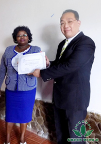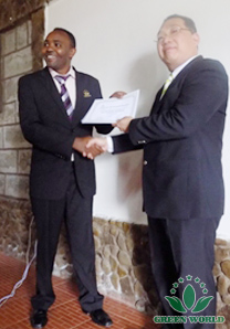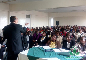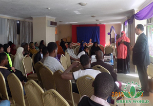 Le programme de formation intensive de Green World Afrique était continué au Kenya.18 avril 2015, M. William Su, directeur général de la filiale de Green World au Kenya, avec M. Budiman, chef du département de l'éducation de Green World Afrique, sont venus à Nyeri du Kenya. Les distributeurs supérieurs de Nyeri ont accueilli M. Budiman et M. William Su quand ils sont arrivés à Batian Grand Hôtel à Nyeri. A Nyeri, M. Budiman a fait une conférence《Green World—changer la vie》aux nouveaux membres et aux distributeurs de Nyeri. M. Budiman a introduit Green World et construit la prise de conscience du public sur l'importance de prendre soin de leur santé.M. Budiman a également introduit des produits de santé de Green World à tout le monde. À la fin de la formation, M. Budiman a dit au public la façon de changer la vie à tarvers l'opportunité de la carrière de Green World.
