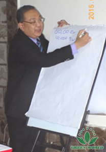 1 mai 2015, les formations de leaders de Green World étaient poursuivies. M. Budiman a souligné le rôle important d'être un bon maître de conférences et comme étant un grand leader, il faut avoir les compétences à organiser des formations pour leur équipe. Il a expliqué les compétences nécessaires pour devenir un bon maître de conférences et a fait une conférence《Green World—changer la vie》.