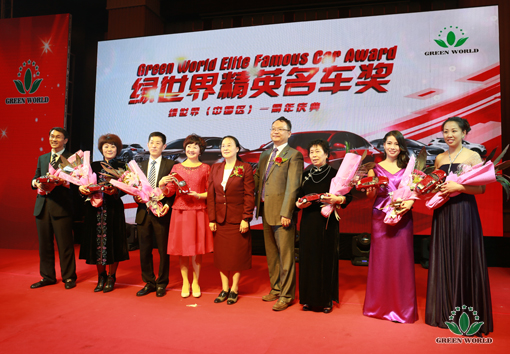 M. Yanguo Chen, Mme Xiaohong Wang et des distributeurs exceptionnels de Green World Eurasie ont décerné les prix aux distributeurs de Green World Chine