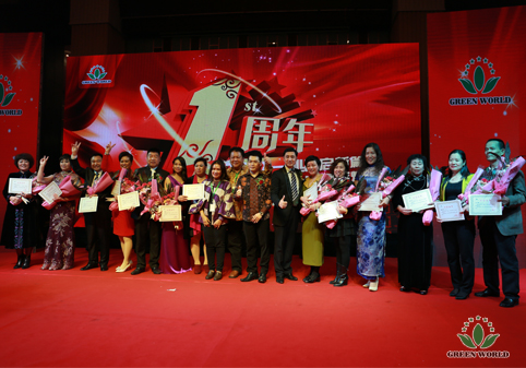 17 octobre 2015, le premier anniversaire de Green World Chine s’est tenu à Crowne Plaza de Zone économique d’Aéroport de Tianjin! Mme Deming Li, présidente de Green World, des dirigeants d'entreprise et des invités, ainsi que près de 800 élites du monde entier de nationalités différentes, des couleurs différentes ont témoigné ce moment historique de Green World.