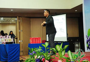Ambassadrice de bleuet de Green World en Indonésie Mlle Yenny Wibowo a pris un discours au nom de M. Junxian Song et il a souhaité la réunion gagner un succès. Consultant de santé de Green World en Indonésie M.Tommy a expliqué les connaissances en santé. Il a souligné les avantages de bleuets pour la vue des enfants, le développement du cerveau et la motricité. Au cours de la réunion, Mme Lucy de Bengkalis a partagé le témoignage de bleuet. Enfin, le distributeur de diamant M. Anthony a annoncé des programmes de promotion de bleuets et le liste des gagnants du concours de peinture.
