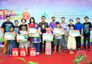 24 avril 2016, La filiale de Green World de l’Indonésie a tenu la deuxième session du festival de Bleuet à PEKANBARU de Sumatra. Ce festival de Bleuet a pris 《Apprentissage Heureux》 comme le thème, avec des connaissances sur le bleuet et les concours de peinture des enfants. La présence était de près de 500 personnes. Ils étaient: Conférencier de Green World en Indonésie M. Junai, Consultant de santé de Green World en Indonésie M.Tommy, Ambassadeur de bleuet de Green World en Indonésie MlleYenny Wibowo, Distributeur de diamant de Green World en Indonésie M. Anthony, les dirigeants de Pekanbaru, de Bengkalis et des villes environnantes ainsi que de plus de 160 enfants de la peinture participant à la compétition.