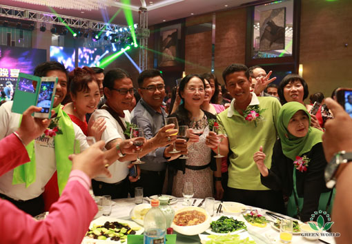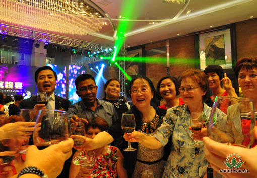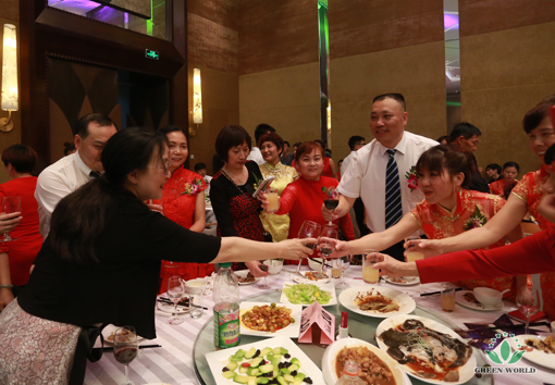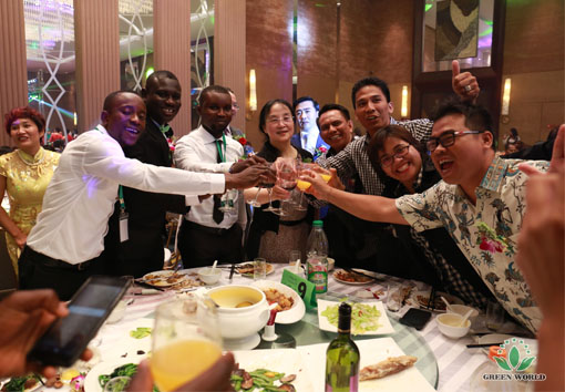 Le soir du 17 octobre 2015, à Crowne Plaza Hôtel de Zone économique d’Aéroport de Tianjin, Green World a organisé un grand dîner! Mme Deming Li, préseidente de Green World, M. Yanguo Chen, vice-président de Green World et président de Green World Eurasie, M. Taotao Wang, président de Green World Chine, Mme Xiaohong Wang, directrice de la filiale de Green World en Ukraine, M. TONY, vice-directeur de la filiale de Green World en Indonésie et d'autres dirigeants et invités ont assisté pour célébrer cette grande fête de Green World!