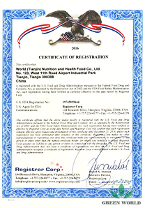 L'examen de FDA a incarné non seulement la certification rigoureuse de FDA sur des entreprises, mais aussi le contrôle strict de Green World sur des produits.