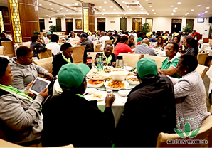 Les représentants de distributeurs excellents de Green World d'outre-mer ont goûté des nourritures copieuses de Jinling