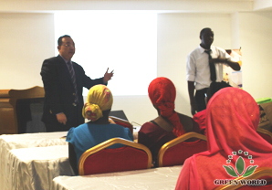 Le lendemain au bureau de Dar Es Salaam, M. Budiman a tenu la formation de base sur la santé et les produits de Green World pour les distributeurs. M. Stephen, leader de la filiale de Green World au Kenya est venu et a traduit la formation en langue swahili.