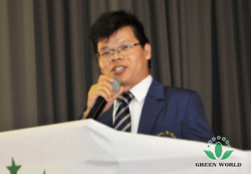 Dans la chanson passionnée, la conférence a débuté, les leaders de haut niveau et la gestion de l'entreprise ont marché dans la conférence. M. David L. Zhang, vice-président de Green World et président de la région africaine a pris la parole, il a résumé les réalisations brillantes d'affaires de Green World en Afrique pendant neuf ans, et a appelé les distributeurs pour aller de l'avant dans la prochaine année, et gagner un cadeau d'anniversaire pour le 10e anniversaire de l'entreprise.