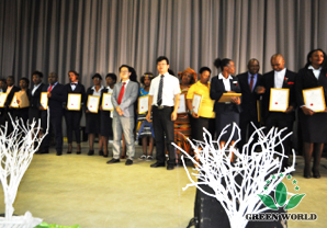 M. David L. Zhang, vice-président de Green World et président de la région africaine a pris la photo avec des gagnants