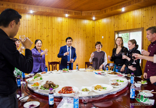 Dans la ferme écologique de Green World, Dr Deming Li a pris une chaleureuse hospitalité à M. Yanguo Chen et à ses partenaires européens pour accueillir chaleureusement leur arrivée.