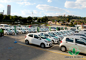 Représentants des distributeurs de Green World enEurasie ont pris la photo devant les voitures commerciales