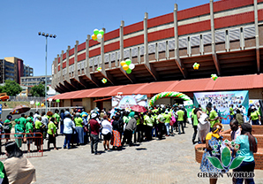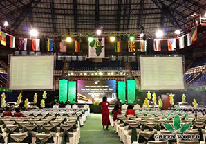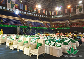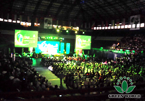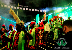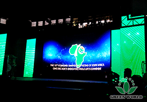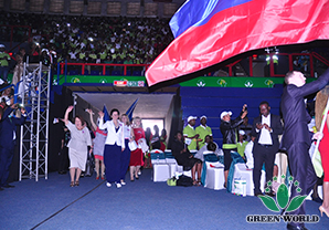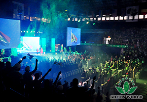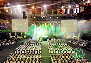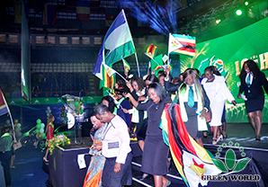 Ellis Park Indoor Arena est emballé, plus de 40 filiales du drapeau national sont suspendus dans la salle. À midi, dans les applaudissements du public, près de 200 élites de 19 pays ont agité leurs drapeaux nationaux dans la file d'attente. Soudain, le drapeau de Green World a volé sur le lieu, les participants ont applaudit les uns après les autres. Avec le rythme et la musique,les partenaires de Green World en Afrique du Sud ont démontré aux dirigeants mondiaux de Green World la passion unique du continent africain.