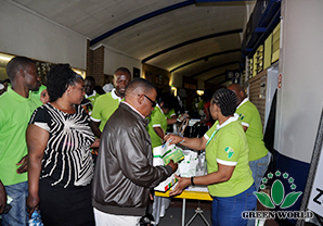 Près de 4 000 distributeurs de Green World provenant de 9 provinces d'Afrique du Sud se sont rassemblés au lieu de réunion et ont reçu le sac du cadeau exquis que l'entreprise a préparé avec soin pour les participants.