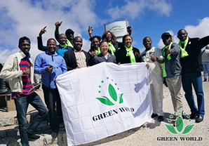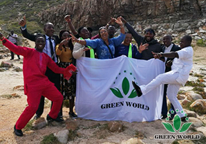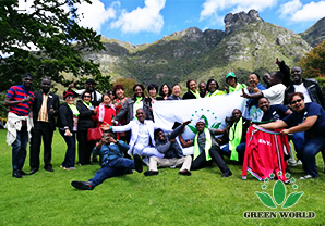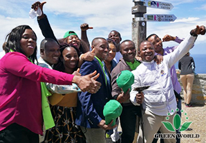 La photo de groupe des distributeurs de Green World au sommet de Montagne de la Table