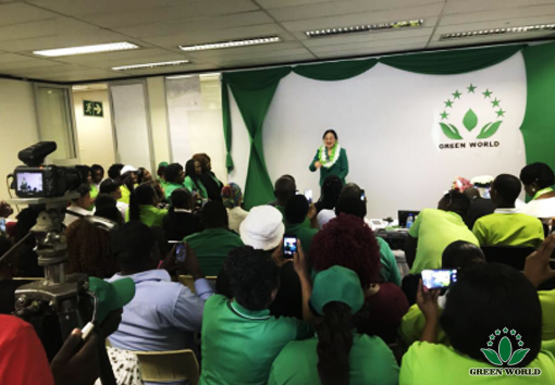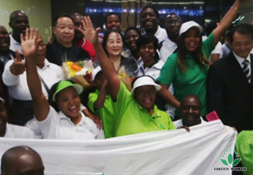 Dans la soirée du 16 novembre 2017, Dr Deming Li, présidente de Green World, est arrivée à l'aéroport international de Johannesburg en Afrique du Sud et a commencé une inspection de deux semaines. M. David L. Zhang, vice-président de Green World et président en Afrique a accueilli Dr Deming Li en compagnie de tous les gestionnaires et représentants des distributeurs de haut niveau à l'aéroport.