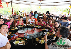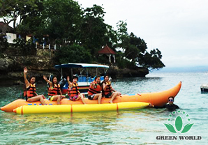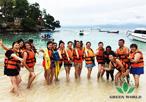 Les membres de la famille de Green World sont arrivés sur la plus belle île de Bali - «Île de Lembongan». Il y avait des paysages naturels uniques tels que des «larmes de démon» et des projets de divertissement tels que la banane, le canoë, la plongée en apnée. Tout le monde ne pouvait pas s'empêcher d'apprécier l'artisanat extrêmement fine faite par la nature. Ensuite, tout le monde a quitté l'île de Lembongan et est arrivé à l'usine de café pour goûter le café et étudier l'histoire et la culture du café.