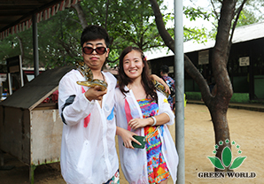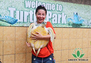 Ensuite, les membres de la famille de Green World sont venus Île de Tortue et ont eu un contact direct avec les tortues de mer, les boas et d'autres animaux.