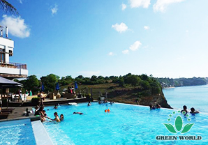 Les membres de la famille de Green World sont venus à la falaise la plus prestigieuse - Valentine's Cliff. La mer et le ciel ont fusionné en un. La peinture comme vue de la beauté était tellement incroyable. Les membres de la famille se sont ensuite rendus à la rue des étrangers, à la plage de Kuta et à d'autres endroits pittoresques où voyager.