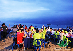 Dans la soirée, les membres de la famille de Green World sont arrivés à la belle plage de Jimbaran en bus. Il y avait de l'eau de mer bleue et un groupe professionnel. De plus, les danseurs professionnels indonésiens ont organisé des danses spéciales pour les membres de la famille de Green World, les accueillant pour leur venue de loin. M. Junxian Song, directeur de la filiale de Green World en Indonésie et M. Tony, vice-directeur de la filiale de Green World en Indonésie, ont assisté au dîner.