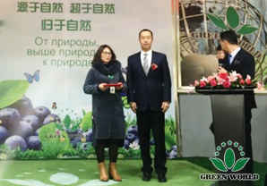 M. David L. Zhang, vice-président de Green World et président de Green World Afrique, M. Yanguo Chen, vice-président de Green World et président de Green World Eurasie et Mme Xiaohong Wang, directrice de la filiale de Green World en Ukraine ont présenté des salutations cordiales au personnel de la base de production de Nanjing et leur a souhaité une bonne année et tout le meilleur par VCR.