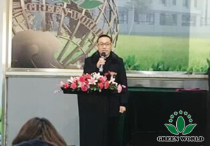 Au début, directeur de Green World Institut de Commerce International de la région chinoise M. Mingyu Li a apporté une formation interne d'entreprise dynamique et passionnée du point de vue de la loyauté, de la capacité, de la gratitude, de l'équipe, de l'innovation et de la réforme, des perceptions du temps, de l'engagement, de la contribution, de l'honnêteté et de la perspective de développement de Green World, tirant des applaudissements des participants.