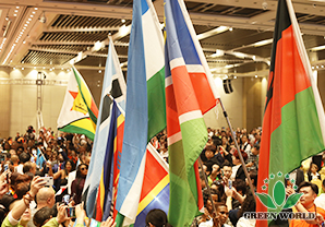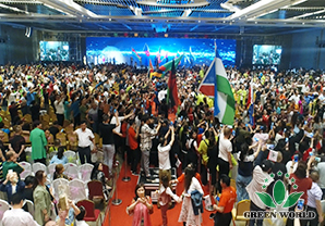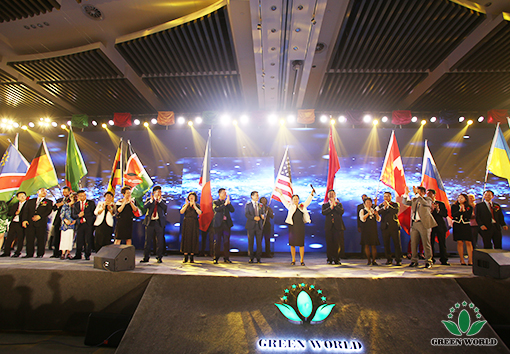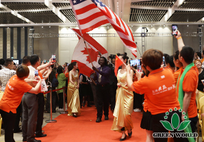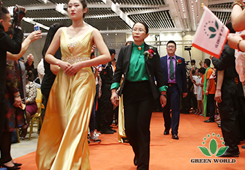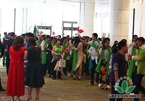 Sous les applaudissements de toute la famille de Green World Chine, les membres de la famille dèoutre-mer de Green World de partout dans le monde sont arrivés, suivis des drapeaux nationaux.