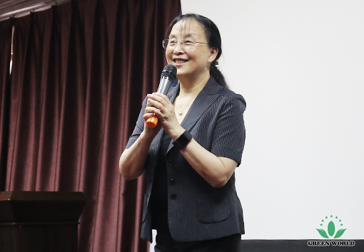 Mme Zheng Huadan, maître de conférences de la section chinoise de Green World Institut International de Commerce explique la «Culture d'entreprise de Green World »