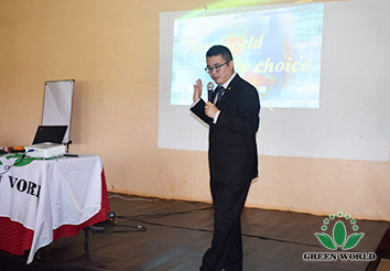 Le leader de haut niveau du Kenya, Simon Njunjiri, manager 2 étoiles, venant de Nairobi pour récompenser les participants qui ont rejoint la famille de Green World ce jour-là.