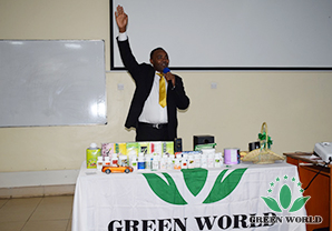 Mr. William Su, directeur de la filialel de Green World au Kenya, a prononcé un discours pour lancer la formation. Après la formation OPP animée présentée par M. Li Mingyu, vice-président de Green World Institut de Commerce International d'outre-mer, Mme Rainie Wang, présidente exécutive de Green World Institut de Commerce International, a donné une conférence sur les produits de santé pour le public.