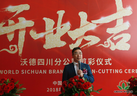 Dr Deming Li, président du Groupe Green World, a prononcé un discours lors de la cérémonie d'ouverture, souhaitant à la filiale un bon début et une performance prospère à l'avenir, et espérant que la filiale puisse mieux assister le service et le développement du marché, afin que le sud-ouest marché n'aurait pas de soucis et se développer régulièrement. Le 17 septembre 2018 est une journée mémorable au cours du développement de la filiale de Green World du Sichuan.