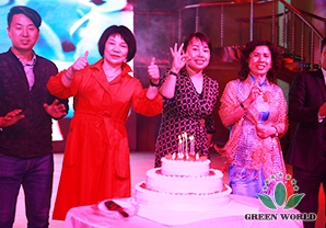 Une séance spéciale organisée lors du dîner a été surprenante et émouvante. Green World Chine a organisé une grande fête d'anniversaire pour un total de 10 partenaires chinois et étrangers dont l'anniversaire est en octobre (Ce sont des membres du personnel de Green World Chine, M. Ying Li, des distributeurs de la région chinoise Mme Jing Cheng, M. Shengui Feng, Mme Tangying He, Mme Fang Ye et des distributeurs étrangers MHINGA BANYINI VVONNE, MATHEBA PHASHAMAMAKGWALE ELLNG TON, MOEKETSI KEABETSWE PEARL, OGWEL COLLINA OTIENO, MVTUME RVTH) et les participants présents ont chanté ensemble la chanson d’anniversaire.
