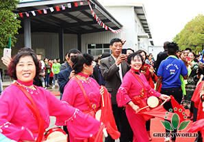 Dr Deming Li, président du Groupe Green World, ainsi que les dirigeants de la base de production de Nanjing ont chaleureusement accueilli leurs distributeurs à l'étranger exceptionnels. Les membres de la famille ont montré leur enthousiasme par une danse du tambour particulière.