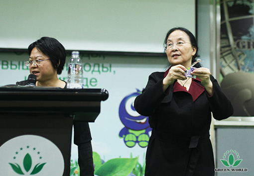 Dr Deming Li et Rainie Wang, chef de Green World Institut International de Commerce, ont présenté un nouveau produit pour les distributeurs à l'étranger