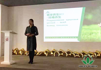 Animée par l'ambassadrice du diamant d'un carat récemment rénovée Mme Wallinkina, la réunion a débuté par l'ambassadrice de la couronne, 11 étoiles,Mme Irina sur OPP. M. Chen Yanguo a ensuite prononcé un discours pour cette réunion de formation et de remise des prix. Mme Rainie Wang, président deGreen World Institut de Commerce International, a présenté aux participants une conférence sur les produits de santé. Pendant la pause, Mme Daisy, excellente conférencière à l'étranger, a appris à chacun à apprendre à désintoxiquer en massant la lymphe.