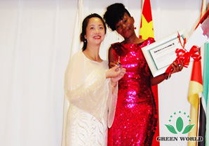 Mme Li Dongyi, directrice de la filiale de Green World au Mozambique, a remis le prix à Mme Teresinha Ngovene, lauréate du prix de voiture