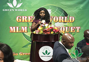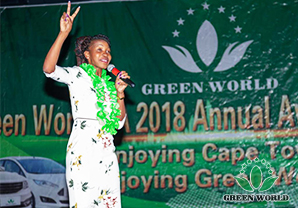Lors de cette conférence, deux distributeurs récemment nommés directeurs une étoile: M. MTHABISI NKIWANE,Mme MBELE MALTER VANJE. Mme NGIDI THEMBISILE est passée avec succès au poste de directrice deux étoiles. Ces trois principaux distributeurs ont respectivement prononcé des discours. Leurs vies ont toutes changé à cause de Green World. Mme MBELE MALTER VANJE avait progressé de concert avec la société. Elle a maintenant acquis une plus grande indépendance financière en exploitant et en gérant plusieurs magasins spécialisés dans Green World. M. MTHABISI NKIWANE n'était qu'un serveur avant de rejoindre Green World, mais il avait maintenant été un excellent chef d'équipe. En outre, il a acheté une villa de luxe avec vue sur la mer à Port Elizabeth, la célèbre ville portuaire d’Afrique du Sud, et avait sa propre maison en Afrique du Sud, rêvée de longue date. Ce qu'il a de plus admirable, c’est que non seulement il a fait don de la nouvelle église dans sa ville natale, le Zimbabwe, mais qu’il envisageait également de faire don d’une école primaire pour offrir une possibilité d’éducation aux enfants abandonnés de leur ville. Mme NGIDI THEMBISILE était enseignante au primaire avant de rejoindre Green World. Ses activités dans Green World se développaient continuellement et maintenant, elle est une entrepreneure prospère avec de nombreux magasins spécialisés et également partenaire et actionnaire de nombreuses entreprises. Les histoires réussies de ces trois dirigeants ont grandement encouragé tous les participants.