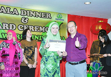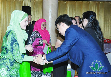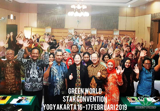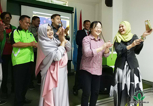 L’équipe de Mugij et les principaux distributeurs de plus de 5 étoiles ont assisté à la réunion. La réunion a été ouverte par des distributeurs locaux qui chantaient et dansaient à la manière des aborigènes indonésiens. Ensuite, les membres de l’équipe de MUGI ont prononcé des discours dans lesquels ils ont exprimé respectivement leurs attentes vis-à-vis du Green World. La chef de la Couronne MUGI, a expliqué à tous comment elle avait rejoint Groupe Green World et ce qu’elle avait accompli. En fin de compte, tout le monde a apprécié la bénédiction spéciale du bonheur de la nourriture NASI TUMPENG, dans l'espoir d'un avenir prometteur pour Green World sous la direction de Dr Deming Li.