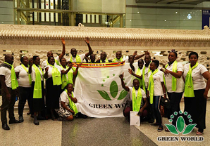 Des distributeurs ougandais arrivent à l'aéroport de Beijing