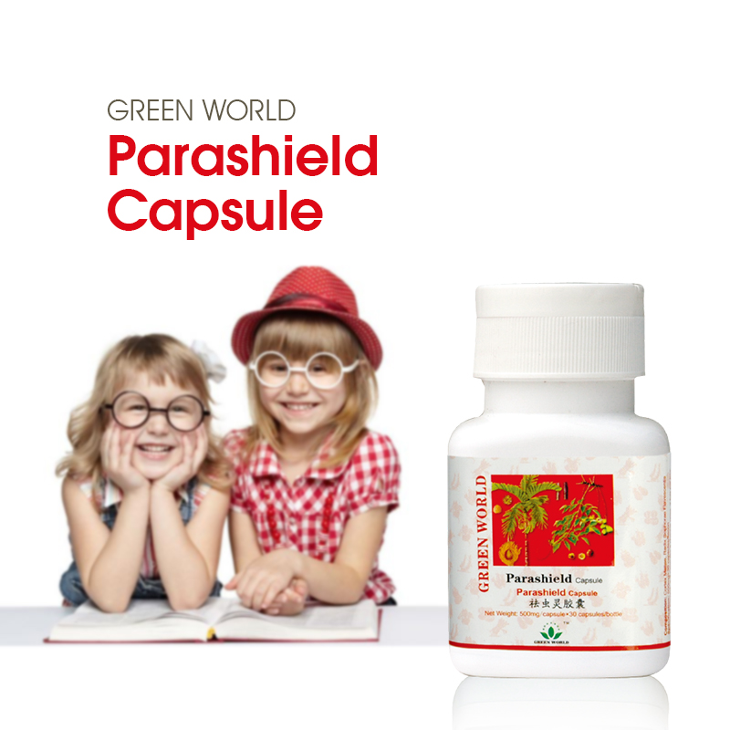 La maladie parasitaire humaine est une maladie commune, qui sabote gravement la santé humaine, parmi lesquels les maladies d'origine alimentaire de nématodes intestinaux tels que ascaridiase, ankylostomiase, trichocéphalose et oxyurose ont un taux élevé d'infection dans la population. Les symptômes tels que des douleurs abdominales, le gonflement abdominal, la diarrhée et la malnutrition peuvent être causés lorsque les parasites creusent à travers la paroi intestinale et migrent dans la cavité abdominale. Green World Parashield Capsule est formulée avec les extraits d'herbes naturelles, qui expulse rapidement et suffisamment les parasites intestinaux. Elle est également efficace dans l'amibiase intestinale.