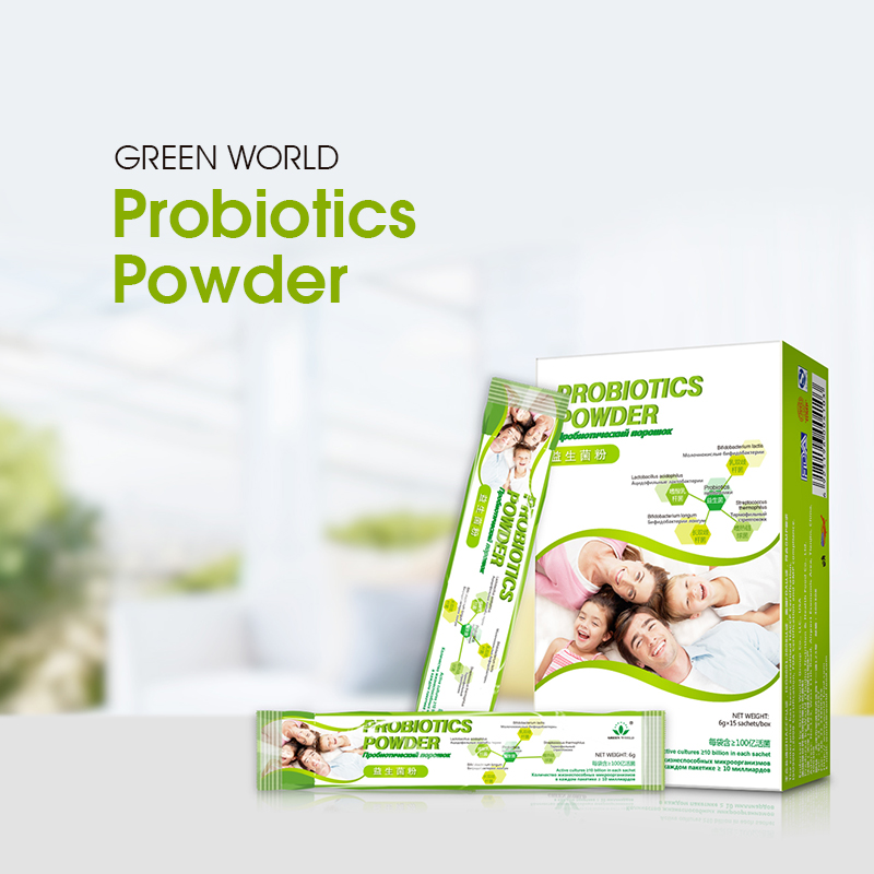 Green World Probiotiques en pudre contient 4 sortes de bactéries vivantes bénéfiques pour le tractus intestinal humain, à savoir, Lactobacillus Acidophilus, Bifidobacterium Lactis, Bifidobacterium Longum, et Streptococcus Thermophilus.